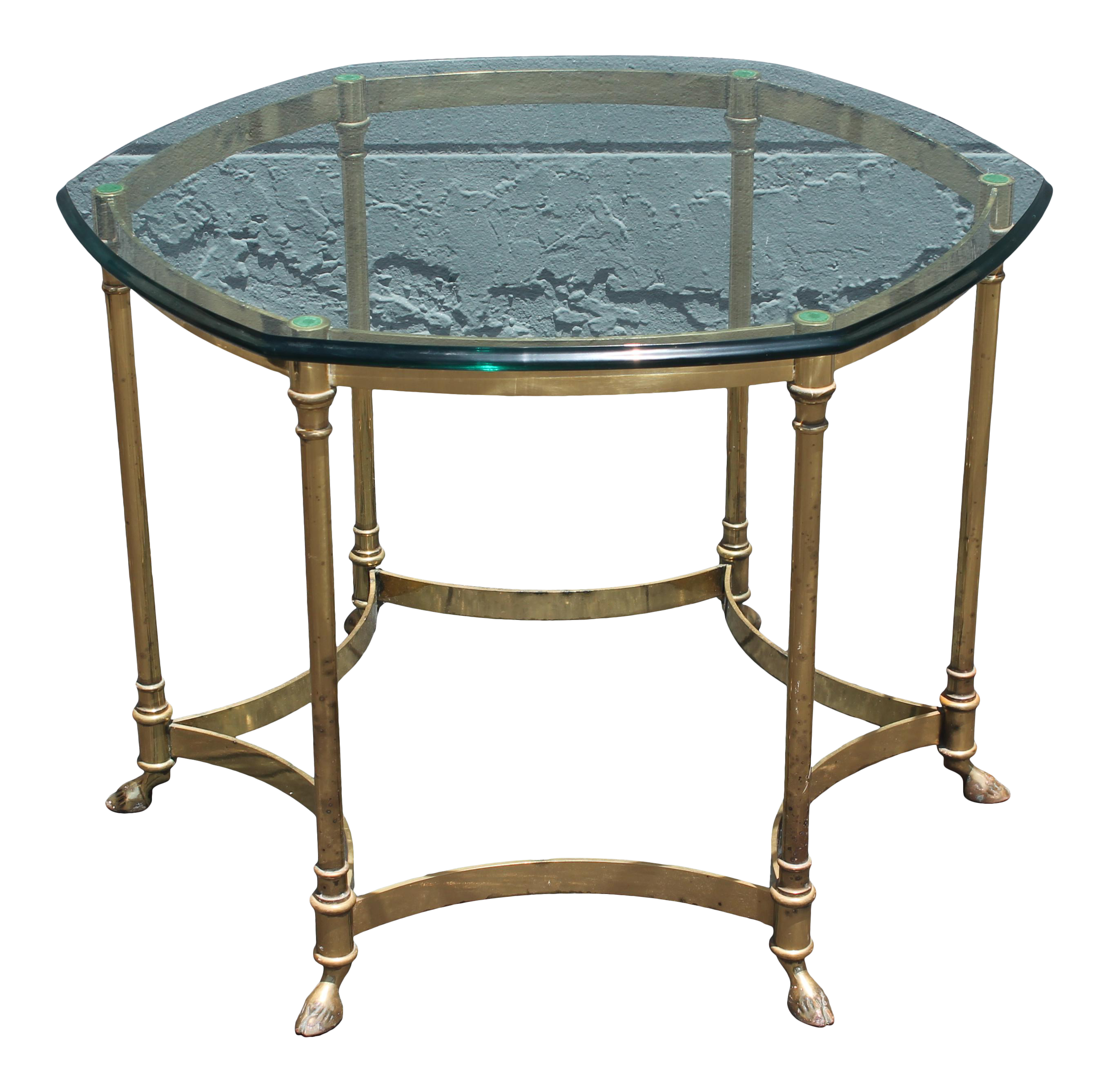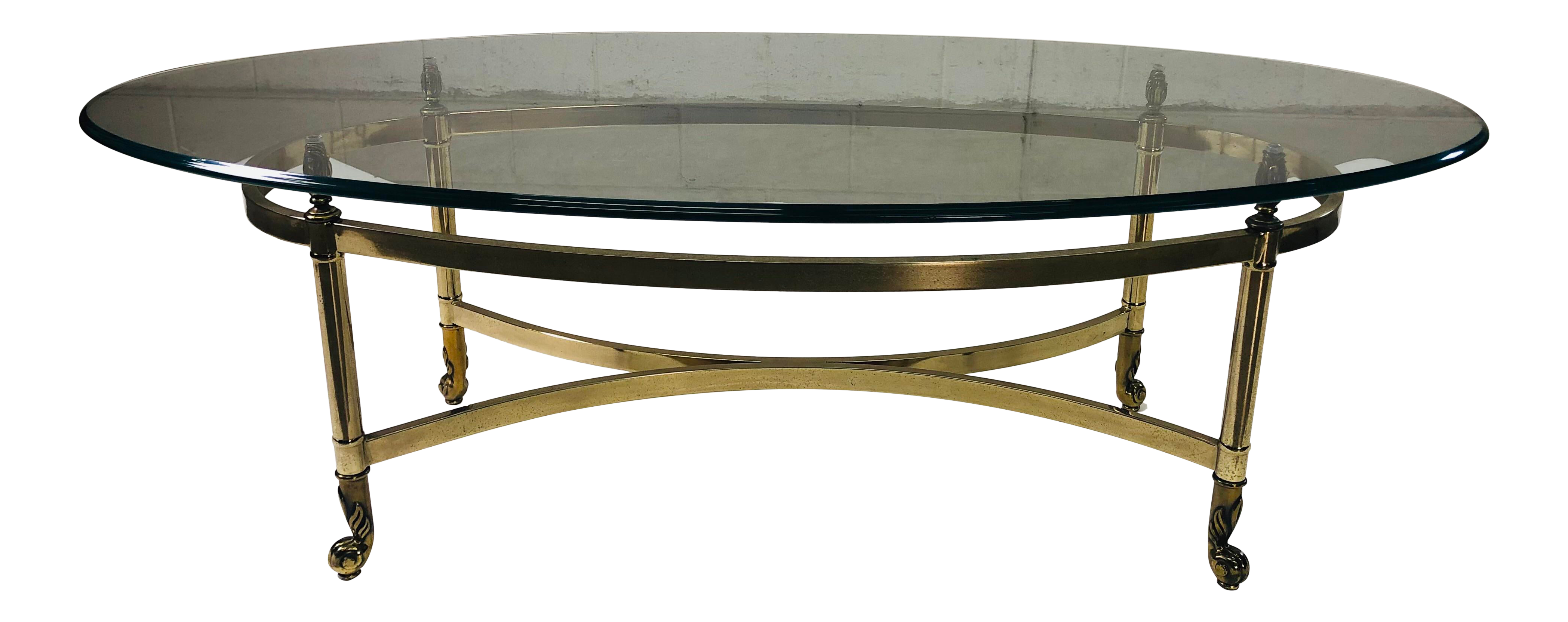 For those looking to upgrade your coffee tables to cocktail status, look no further than la barge. Vintage mid century labarge brass hoof foot hollywood regency oval coffee table. Set of three labarge brass and glass hoofset of three labarge brass and glass hoof feet tables: A gorgeous modern hollywood regency console or sofa table attributed to labarge italy, circa 1980s chrome and brass, with italian marble top. Labarge baroque hollywood regency brass cocktail / coffee table.